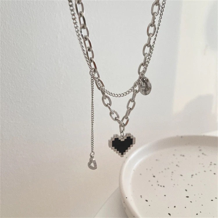 The Black Heart Prom Necklace is a stunning piece designed to add elegance to any prom ensemble. Crafted with black heart-shaped charm set in a delicate chain, it exudes sophistication and beauty.